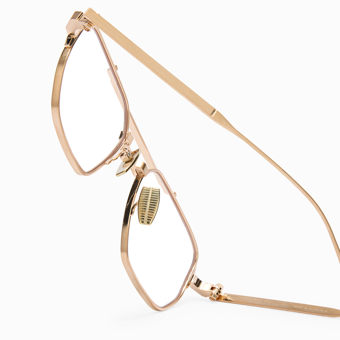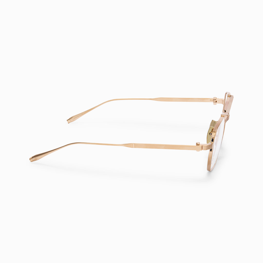Display Name: Proteus - Brushed 12k Gold - Deep Emerald Green enamel - Clear Lenses