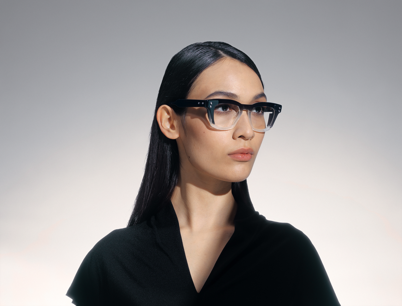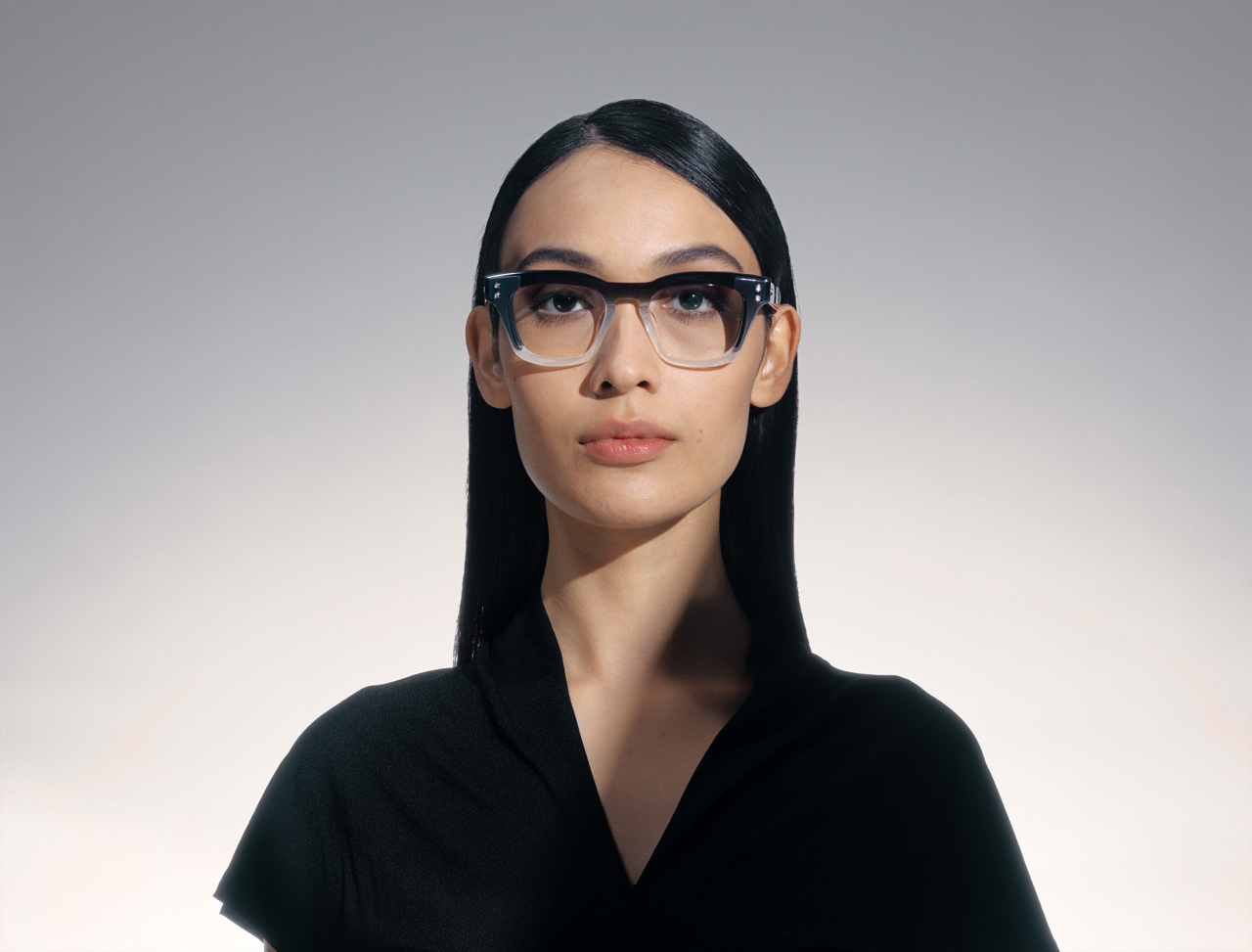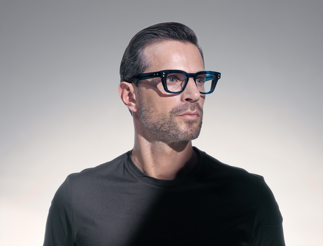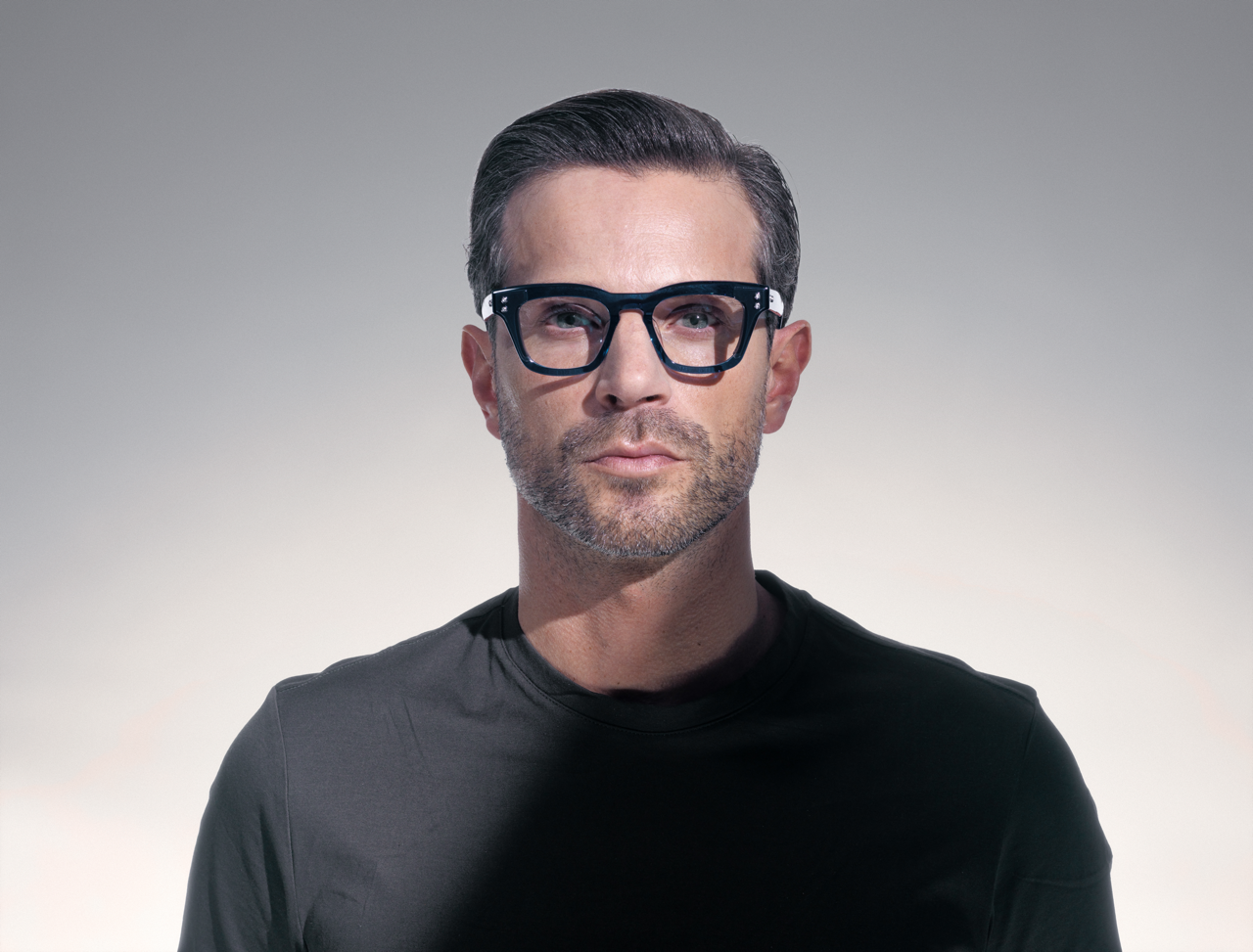 The Ara design, bold and smaller, stands out with its European mid-century silhouette. The colors—crystal blue, black and a degradé evolving from to light grey to jet black—pair perfectly with the side shields’ complementary tones and textures, helping create a unique look, both front and back.