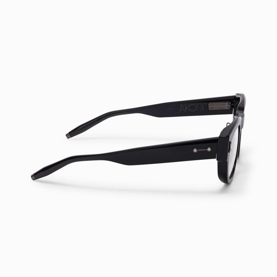 Display Name: Ursa - Black - Black Rhodium with machine silver - Clear Lenses