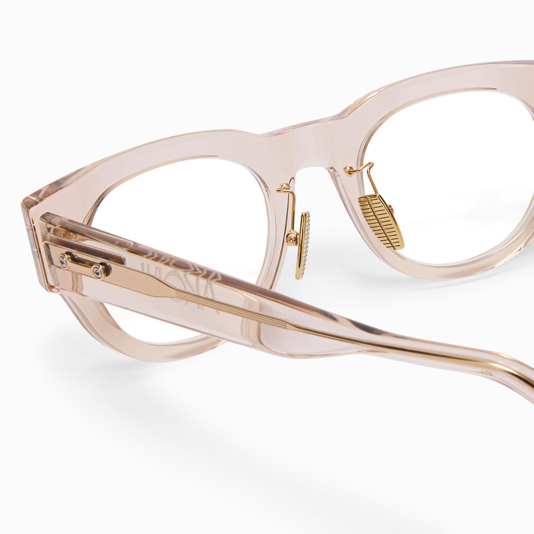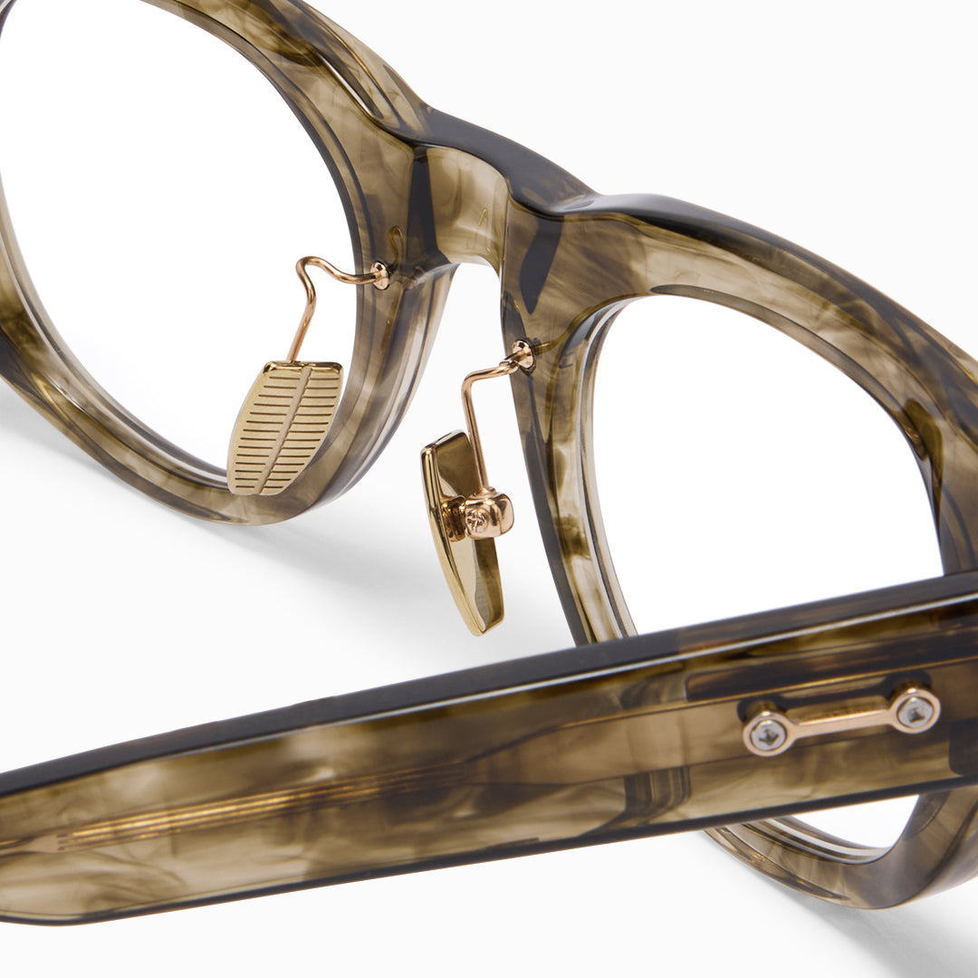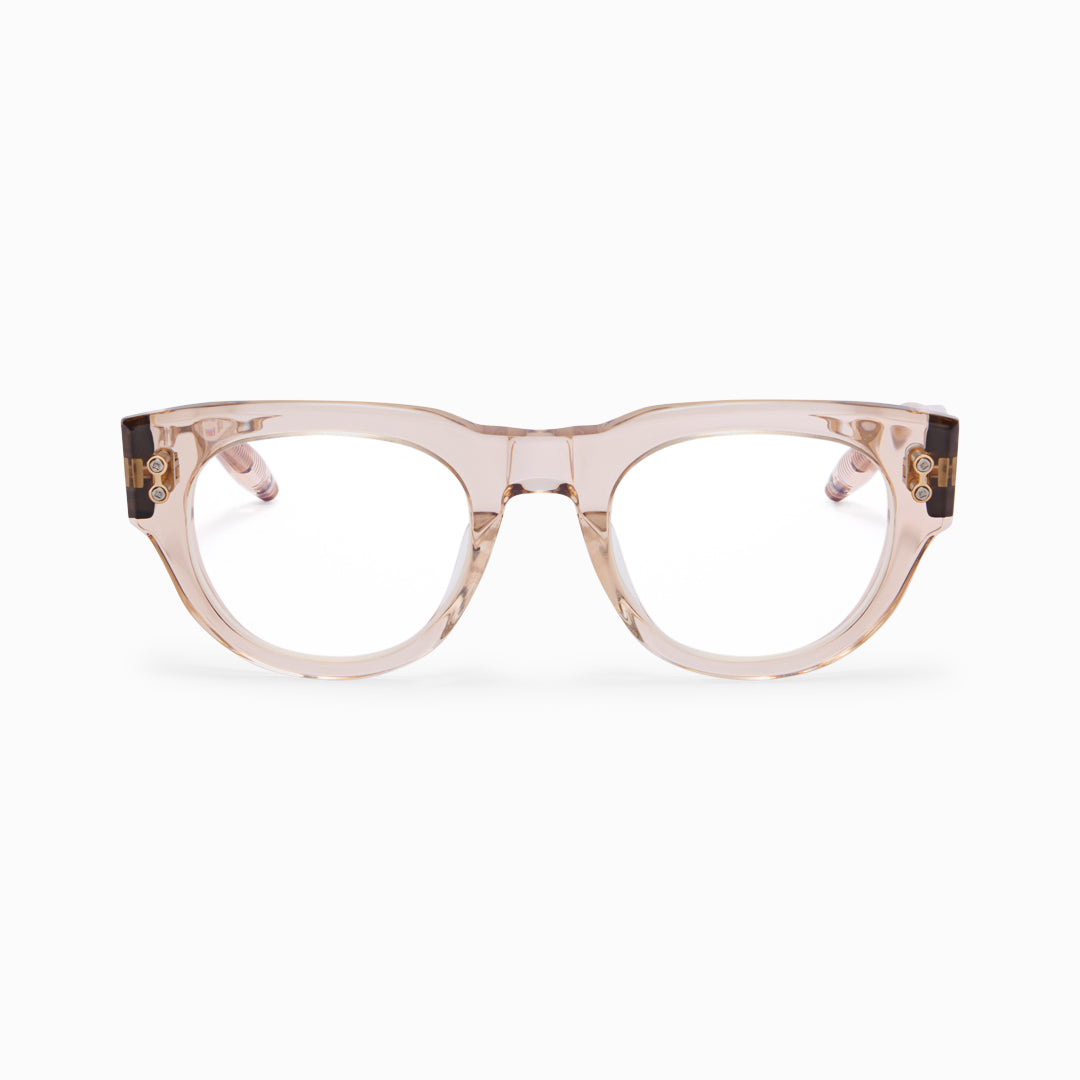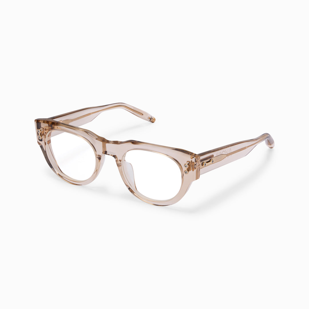 Named for the Latin word for “bear” and the constellation Ursa Major, Ursa draws on mythology and celestial symbolism, evoking strength, protection, and enduring presence. Its refined pantos silhouette reinterprets a timeless everyday style, amplified with substantial lines and sculptural presence to create a contemporary, confident aesthetic. Crafted from thick, high-quality acetate, Ursa features finely etched millings and textured surfaces that enhance luminosity and emphasize clean, defined lines