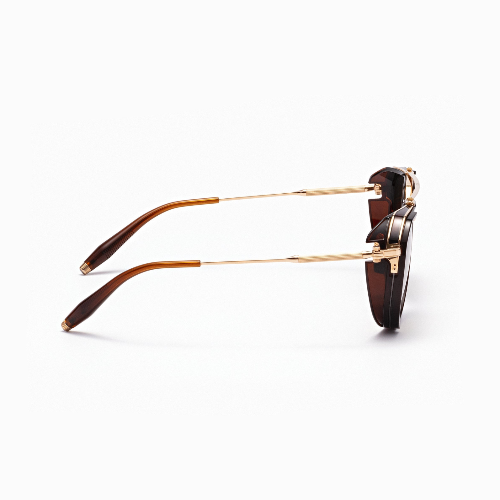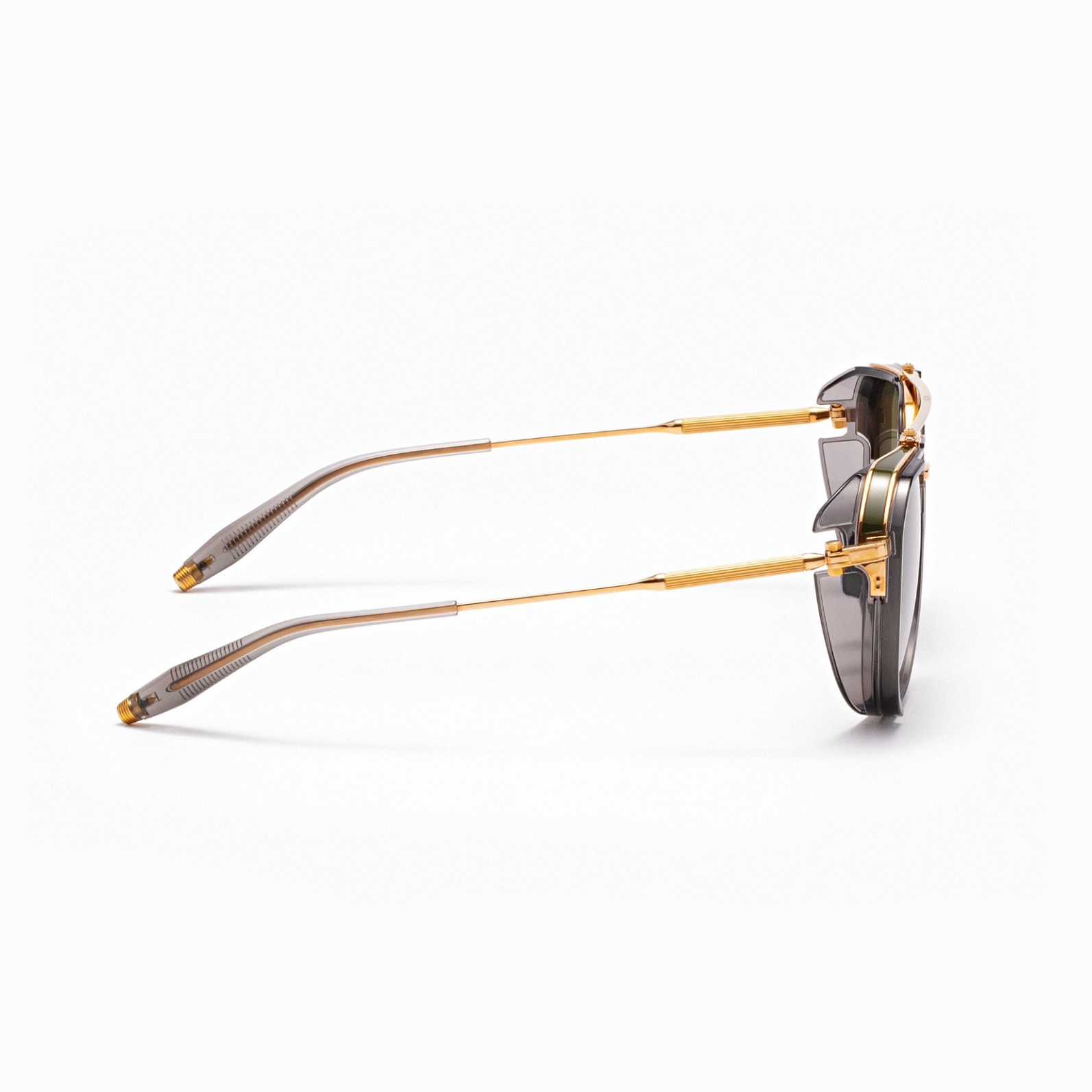 The Echo makes very clear that Akoni is continually inspired by the great art that surround us. The frame’s unique frontal hood channels architect Jean Prouvé’s striking mid-century “brise-soleil” designs. The Echo also relies on a striking graphic play. Black enamel edges the rims, hoods and acetate side cups of the frame—helping to ensure that this is truly a one-of-a-kind aviator design.
