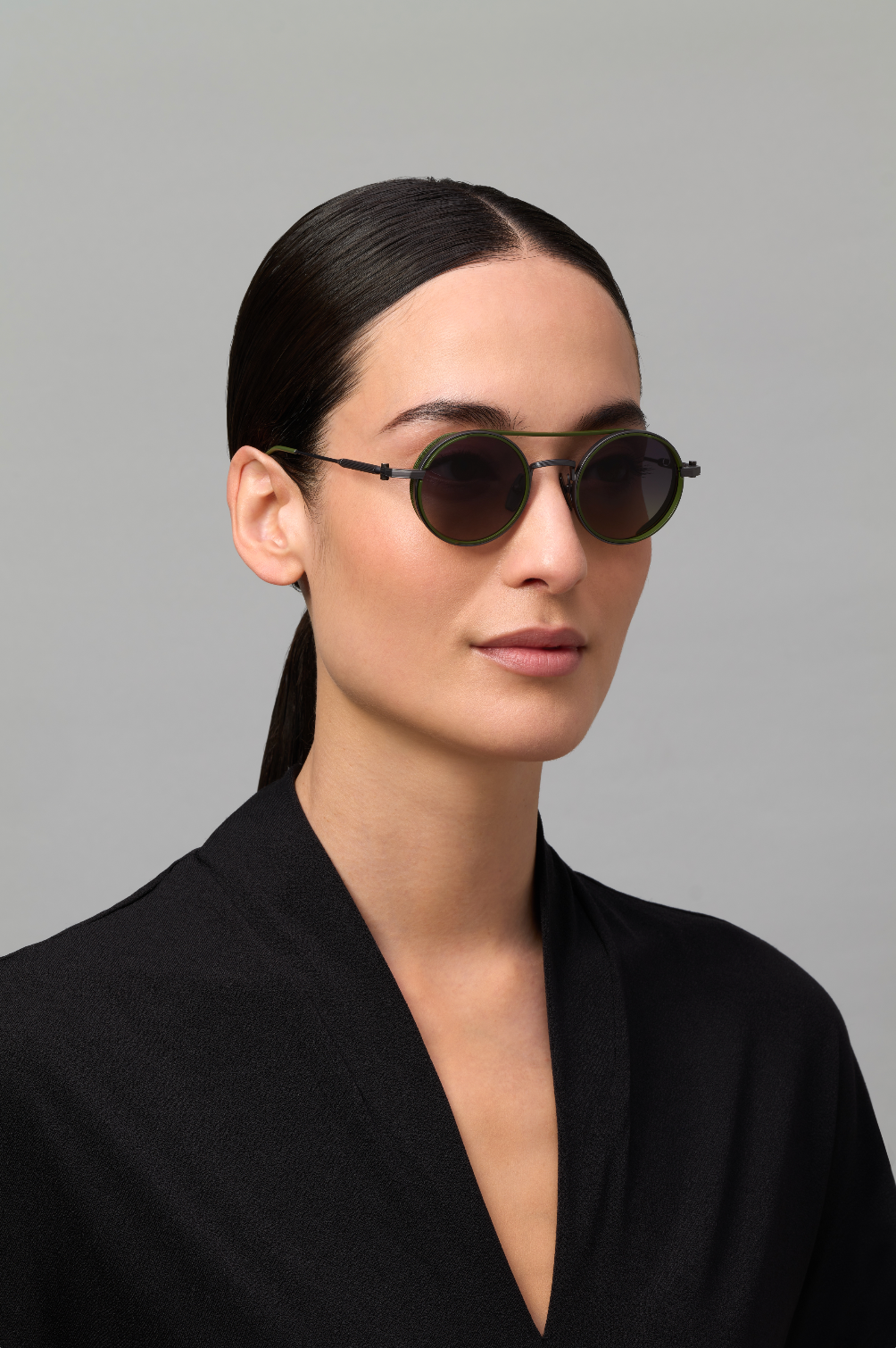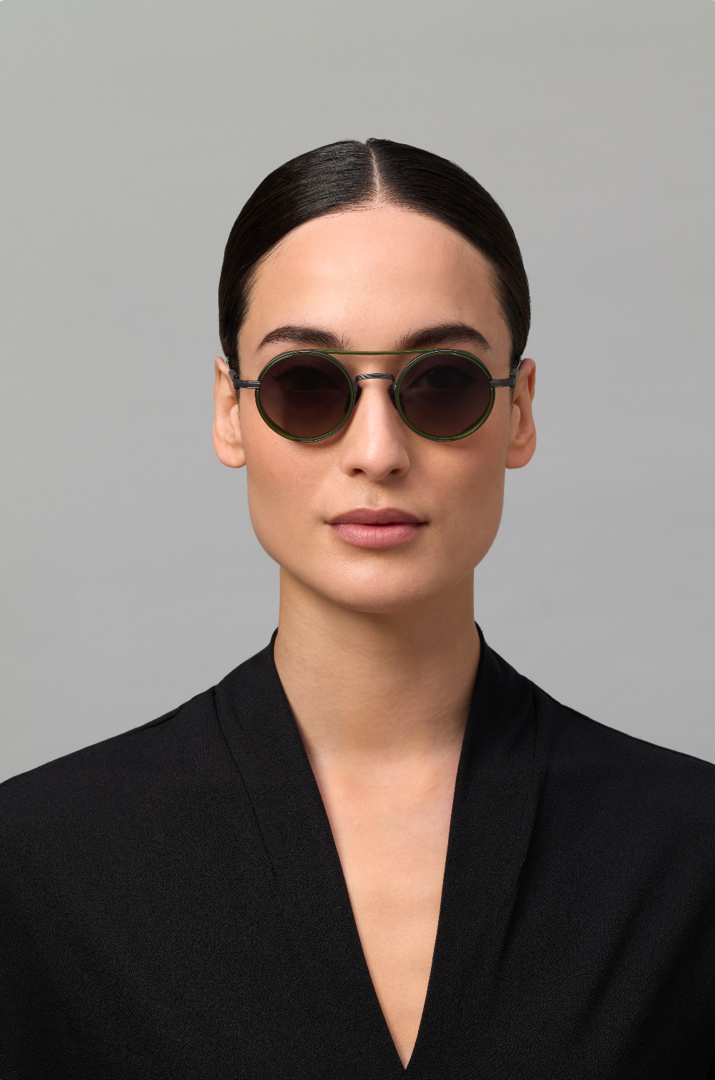 Eris, with its innovative co-centered pairing of two titanium frames, relies on the power of unexpected repetition to convey the most lasting of impressions. While Eris may be extremely lightweight, Akoni’s Japanese titanium provides exceptional strength. The side shield’s arresting pattern of circles recall both the Akoni logo and, once again, the poetic potential of repetition.