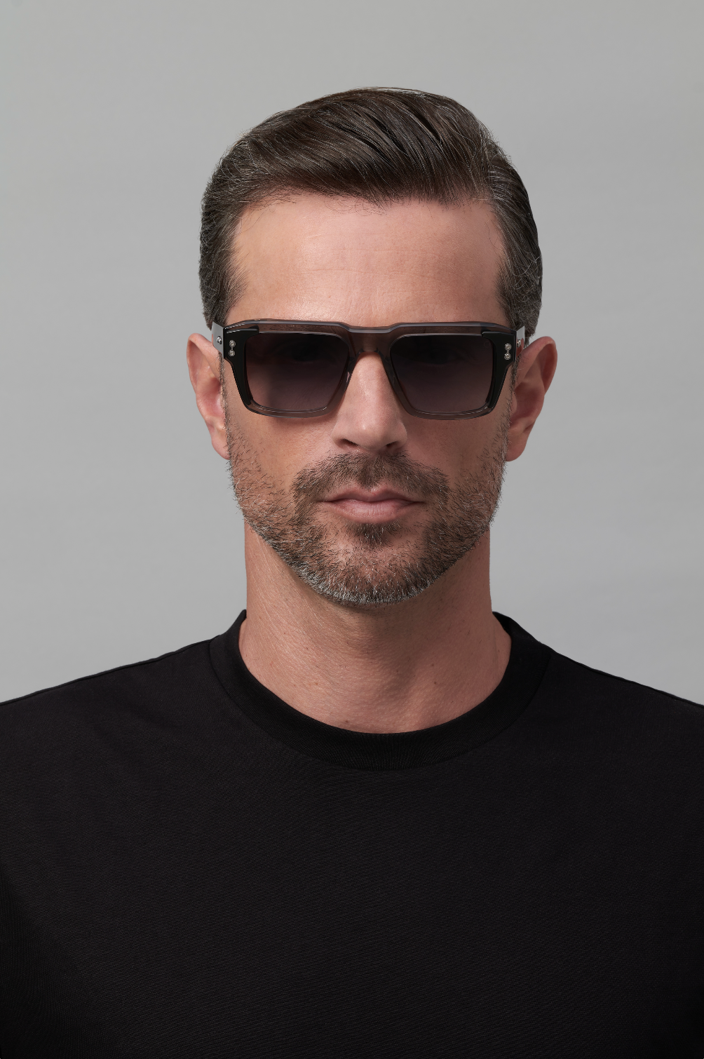Masculine and oversized, Hercules’ bold acetate frame riffs on the powerful silhouettes of the finest luxury watches while channeling the sleek allure of the legendary leading men of Italian cinema. Akoni's craftsmen have precisely fit the brand's innovative side shields into Hercules' thick frames, creating a fascinating play on texture and color, both front and back.
