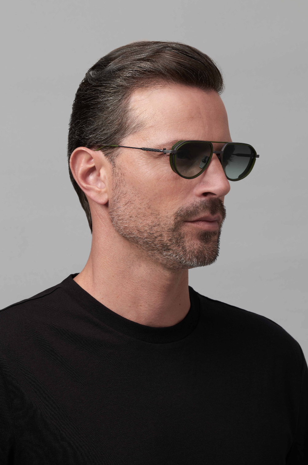 Designed to accompany today’s modern explorers as they pilot towards tomorrow’s destinations and discoveries, Akoni’s Skyracer clearly draws upon the timeless functional stylings of the spacecraft program, spotlighting the essential necessity of sleekly pairing the greatest possible strength with remarkable lightness. And, as always, Akoni’s dedication to intelligent luxury translates into a perfectly balanced design whose singular artisanal richness impresses upon close inspection. A house logo is discretely etched atop custom brow bars. Striking double rims outlining lenses are balanced by equally compelling perforated side shields. Temples, embellished with Akoni’s signature tactile knurling pieces, are finished off with branded tips and custom screws—and all of these one-of-a-kind embellishments are hand-crafted by respected Japanese artisans, relying only on Japan’s finest titanium.