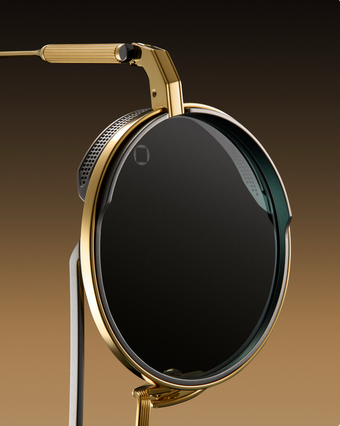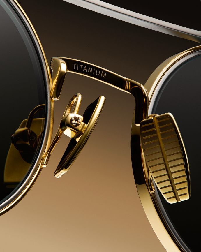 Its signature titanium frames are enhanced with 18K gold plating of 2 µm, adding a subtle, radiant touch that reflects quiet confidence and understated luxury. Only 100 pieces are available, making it a mark of refined taste and lasting style.