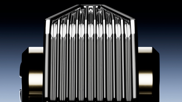 Spitzer translates the thrill of motion into design. Its aerodynamic lines, layered volumes, and sculpted side shields echo the elegance of flight and speed, while every curve captures light like fleeting movement.